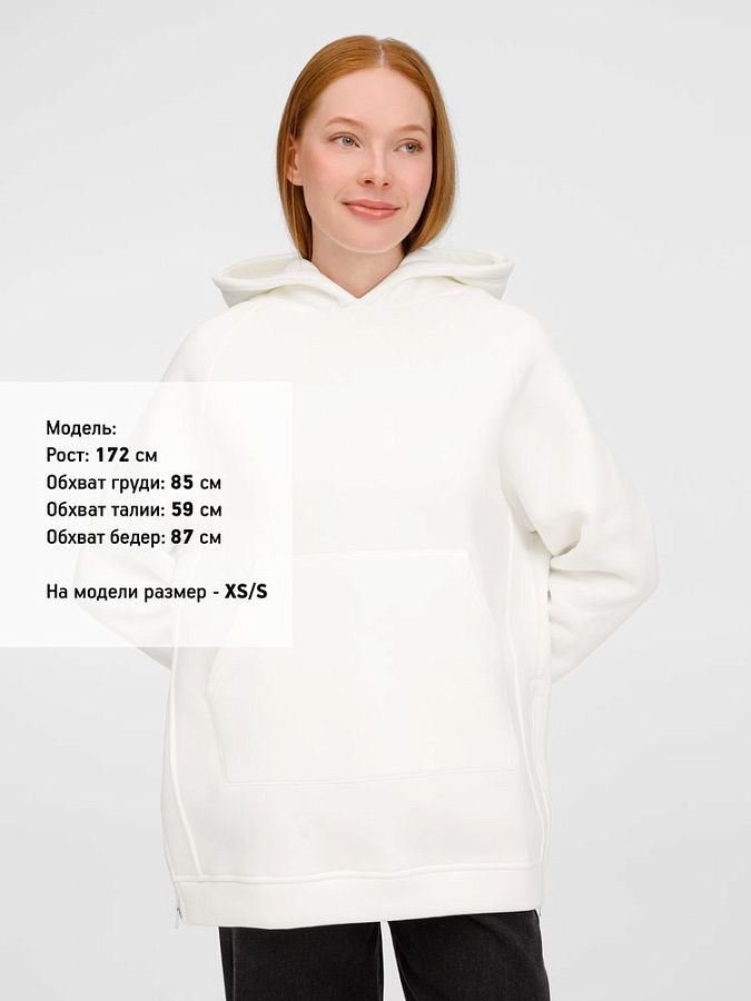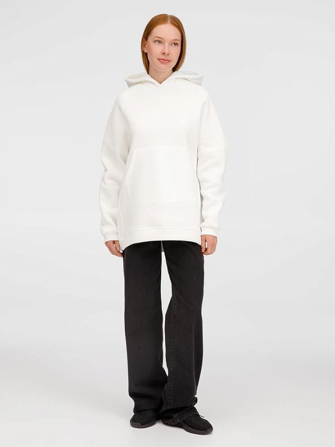 Худи унисекс удлиненного силуэта с молниями в боковых швах.
