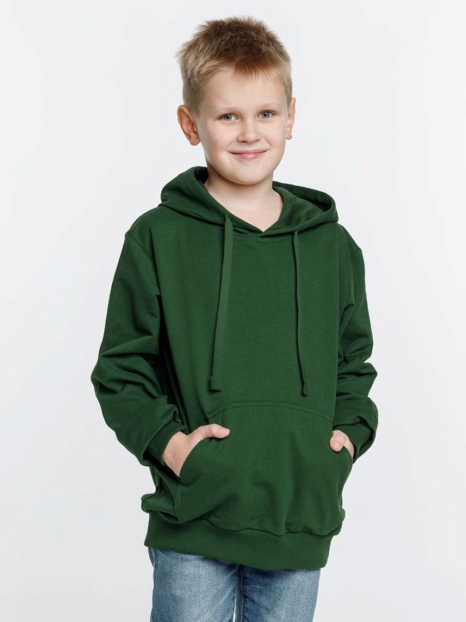 Легкое детское худи с карманом-кенгуру. Выполнено из высококачественного полотна, которое прошло активное крашение, предварительную термоусадку и обработку энзимами.