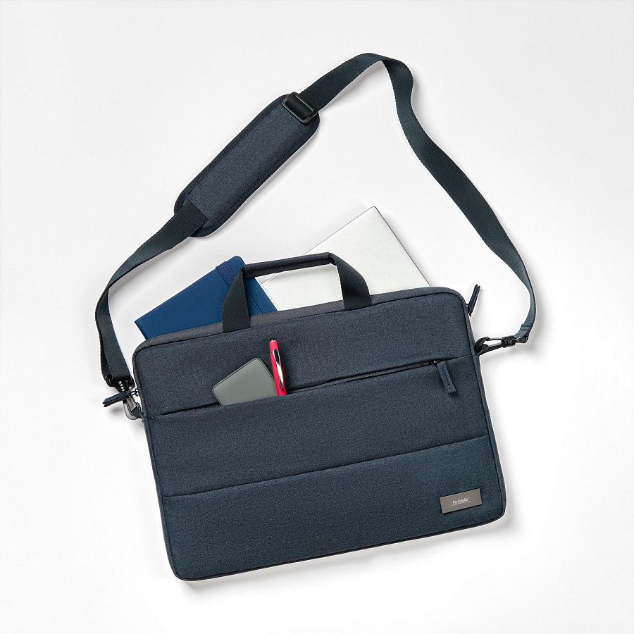 Основное отделение для ноутбука с диагональю до 15,6 дюймов оснащено мягкими вставками для защиты при транспортировке. В комплекте удобный регулируемый плечевой ремень. Крепкие ручки и съемный плечевой ремень обеспечивают комфорт при носке.