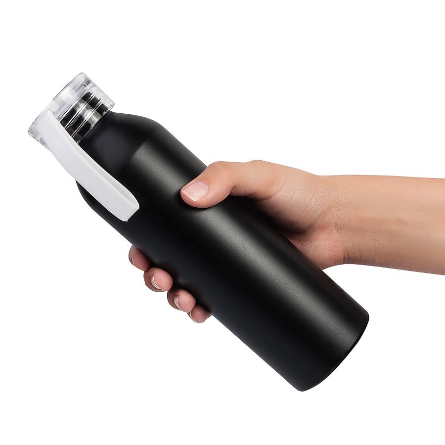 Алюминиевая матовая бутылка с пластиковой крышкой.