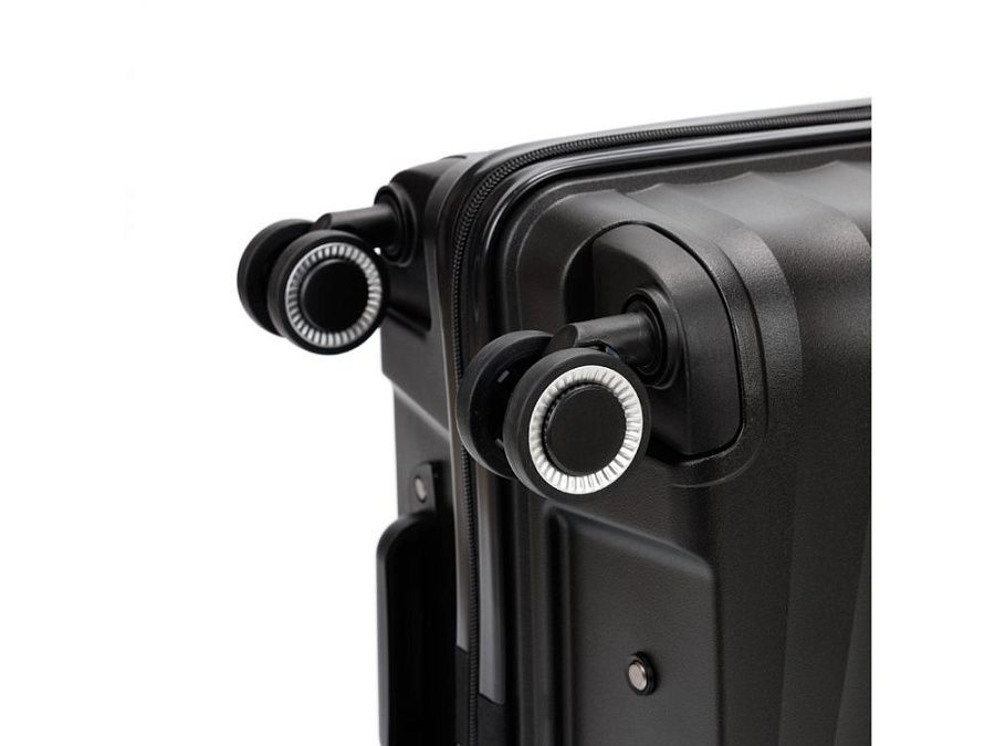 Легкая регулируемая телескопическая ручка и система из 8 колес, вращающихся на 360 градусов, обеспечивает мягкий ход и свободное движение во всех направлениях.