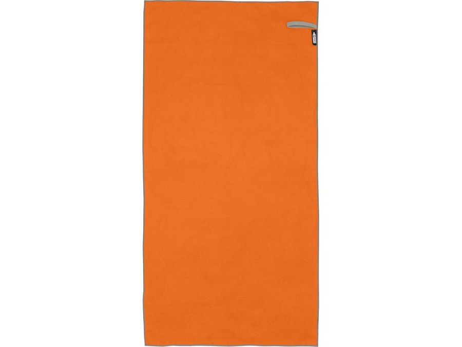Спортивное полотенце Pieter очень хорошо впитывает влагу, легкое, быстро сохнет, а ткань прочная и очень мягкая. Когда полотенце сложено и закреплено резинкой, оно уменьшается до небольшого размера, поэтому его удобно брать с собой в тренажерный зал, бассейн, на пешую прогулку или в поход. Полотенце размером 50 х 30 см изготовлено из 90 % переработанного полиэстера GRS и 10 % нейлона. Его можно стирать в стиральной машине при температуре 40 °C. В комплект поставки входит мешок для хранения (15,5 x 10 см), изготовленный из переработанного ПЭТ-пластика, обеспечивающий большую площадь для печати логотипа. 10% Нейлон, 90% GRS certified recycled polyester, 200 g/m2.