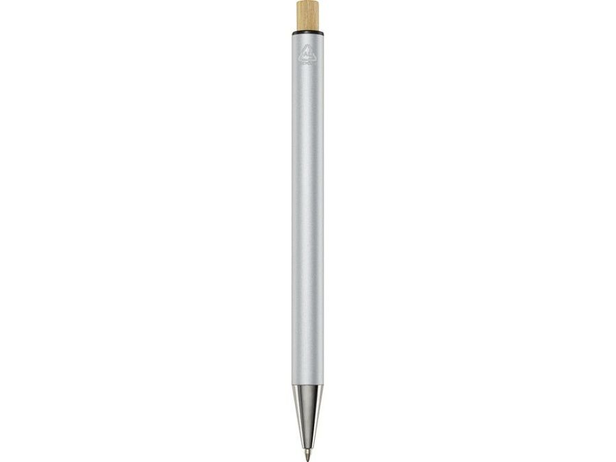 Шариковая ручка Cyrus изготовлена из переработанного алюминия, что требует меньше энергии, чем производство алюминия из сырья. Это также уменьшает количество отходов на свалках и помогает сохранять природные ресурсы для сокращения выбросов парниковых газов. Нажимная кнопка изготовлена из бамбука. Цвет чернил: синий. Длина непрерывной линии: 800 метров. Размер пера: 1,00 мм. Recycled Aluminium.