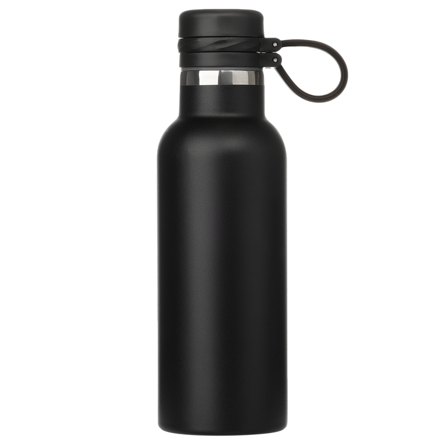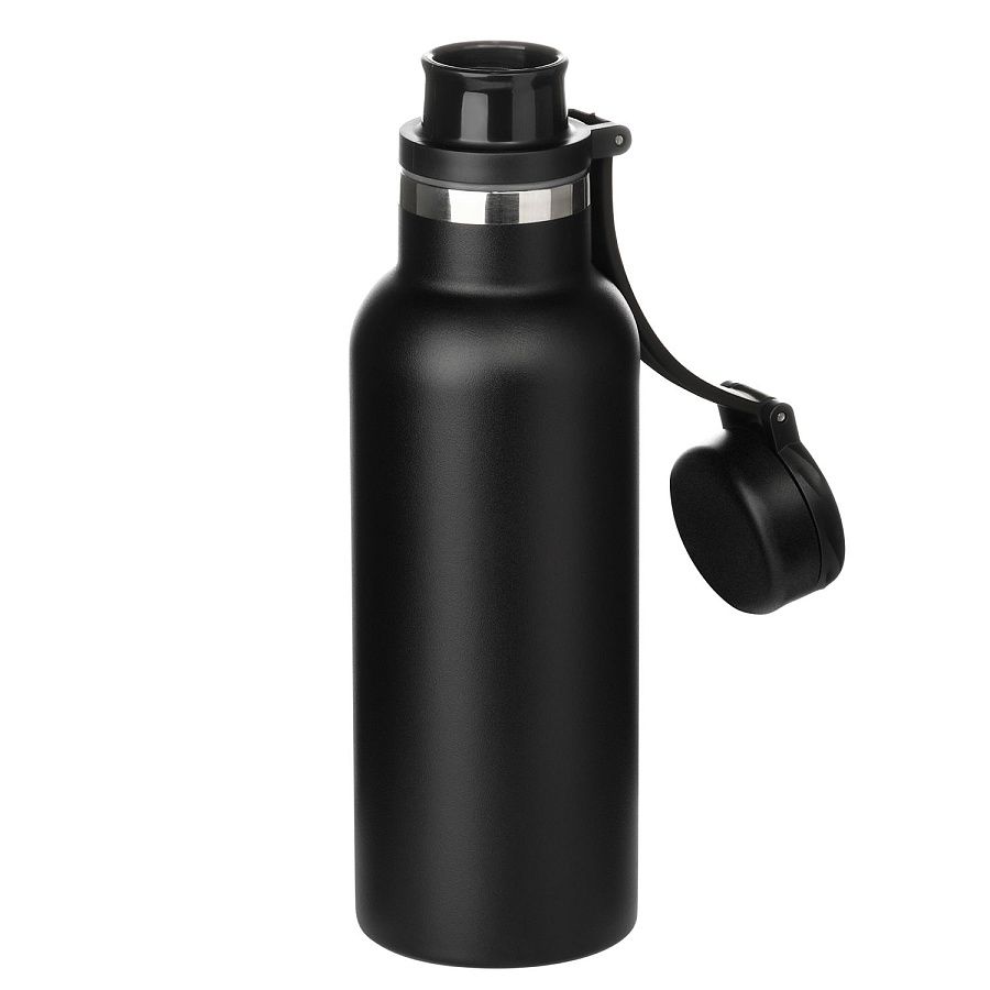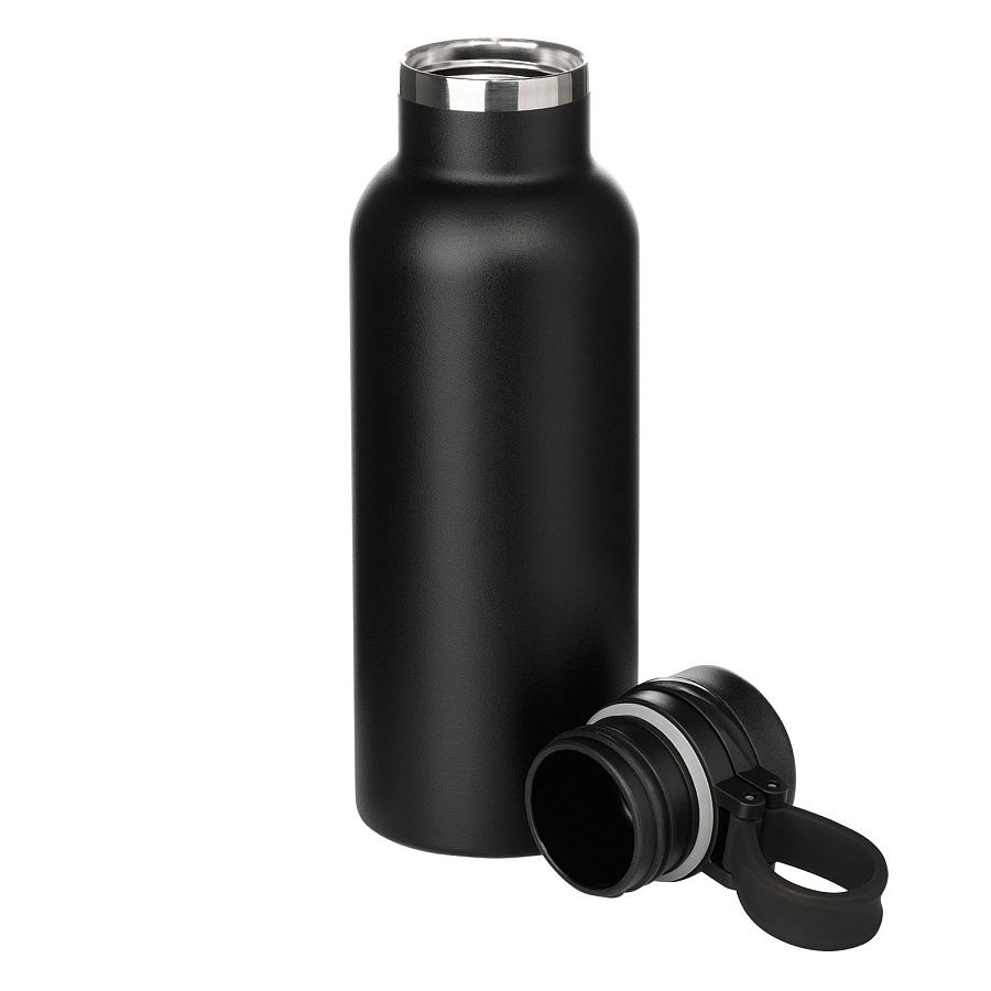 Вакуумная герметичная конструкция выполнена из двухслойной высоколегированной стали 304 марки, что делает конструкцию более прочной и устойчивой к мелким сколам и царапинам. Крышка из высококачественного пластика, оснащена удобной силиконовой петелькой для переноски. Бутылку можно переворачивать и класть в сумку.