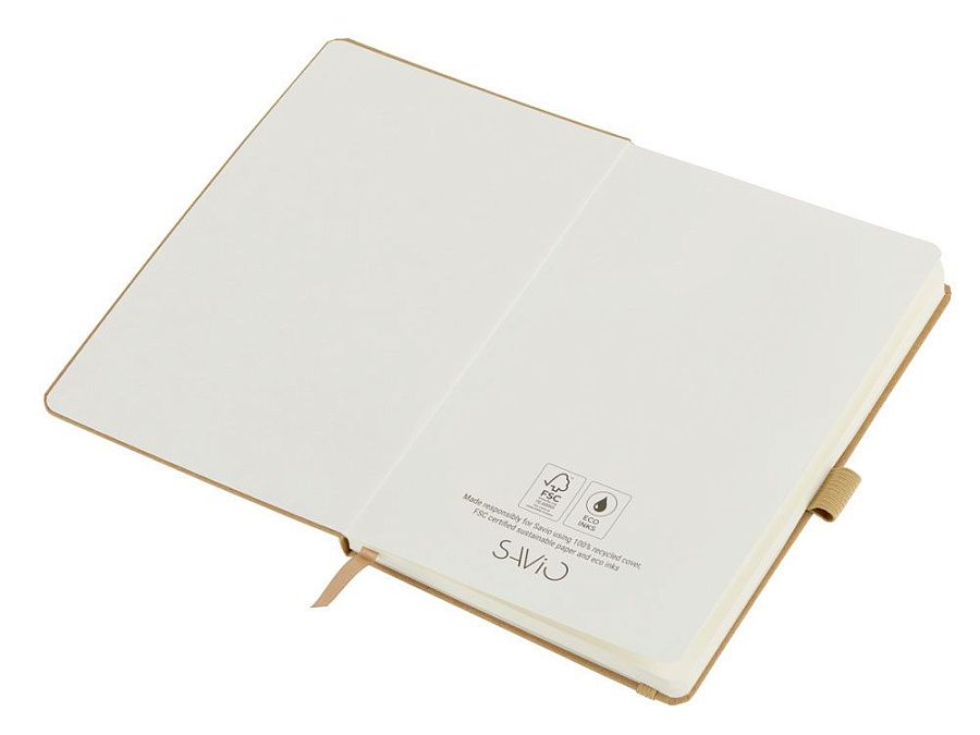 Sevilia от Savio — блокнот с твердой обложкой из крафта, закрывающийся на вертикальную резинку. Для удобства использования предусмотрены ляссе и петелька для ручки, совпадающие по цвету с резинкой.