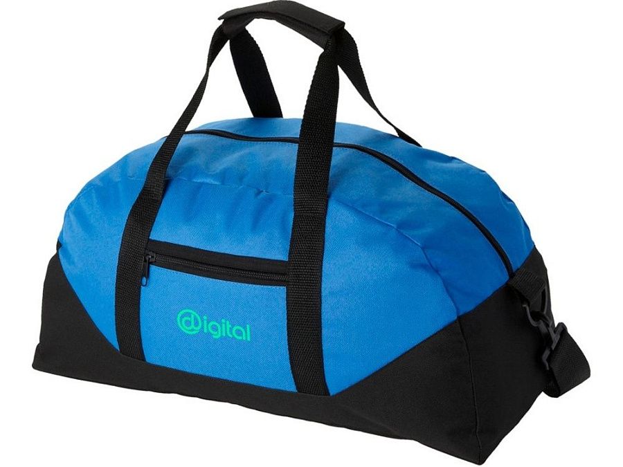 Основное и переднее отделение на молниях. Две усиленные ручки. Регулируемый плечевой ремень, максимальная длина 110 см.