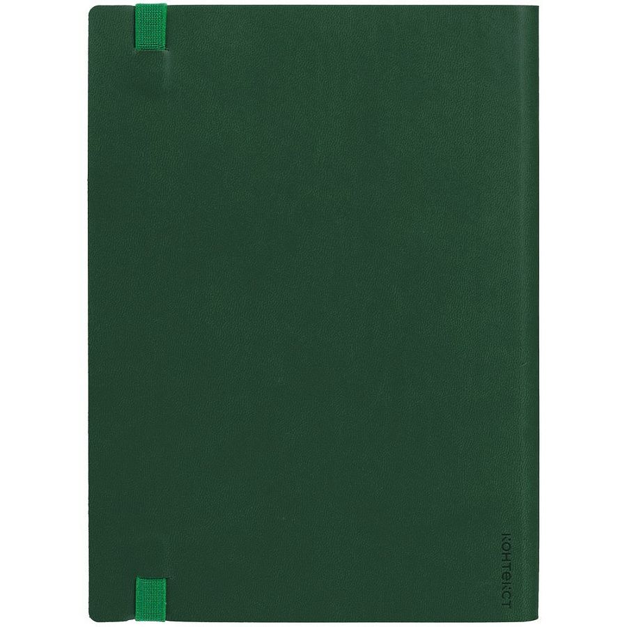 Ежедневник с гибкой обложкой выполнен из материала Latte, зеленый FF, и дополнен резинкой шириной 1 см, капталом и ляссе в цвет обложки.