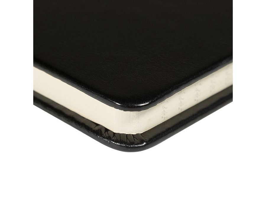 Твердая обложка с приятной фактурой, углами закругленной формы, книжный переплет и ляссе в цвет обложки наделяют блокнот практичностью.
