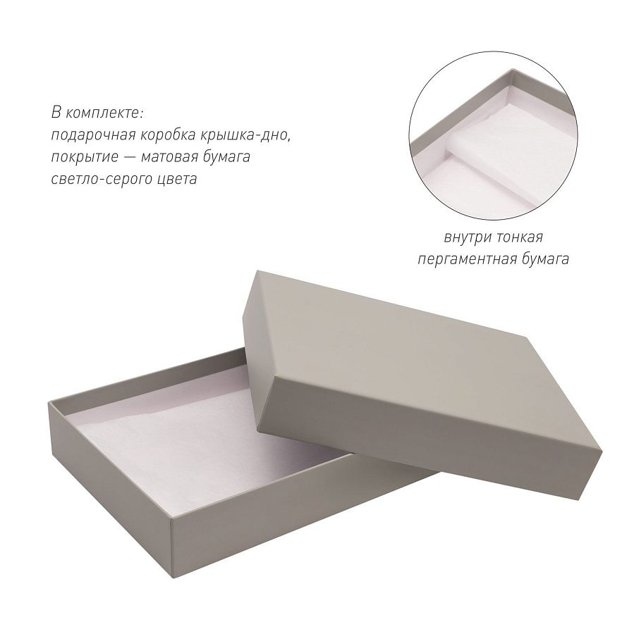 • Упаковка: подарочная коробка крышка-дно светло серого цвета. Внутри дополнительная упаковка в тонкую пергаментную бумагу.
