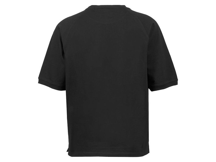 Футболка выполнена из хлопкового френч терри с петельками на изнаночной стороне. Горловина обработана рибом 2х2 и дополнительно усилена тесьмой-елочкой с внутренней стороны спинки и дополнена кокеткой по спинке для нанесения логотипа клиента. Рукав реглан продублирован рибом по низу. Разрезы в боковых швах. Гладкая поверхность полотна позволяет идеально нанести изображение. Футболка комфортного силуэта.