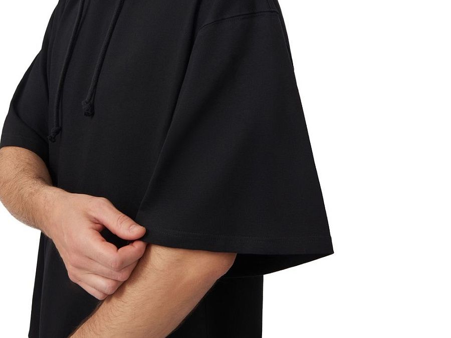 Худи с коротким рукавом выполнено из хлопкового френч терри с петельками на изнаночной стороне. Подкладка капюшона выполнена из основного полотна для объемной посадки. Модель комфортной и актуальной посадки оверсайз отлично подходит для обычной жизни и в качестве промо мерча.
