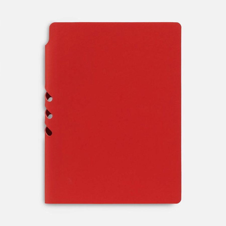 Гибкая обложка выполнена из материала Soft Touch Ultra, красный РР и Latte, красный РР (внутренняя часть обложки). Внутри корешка — специальное место для крепления ручки размером до 15х1 см.