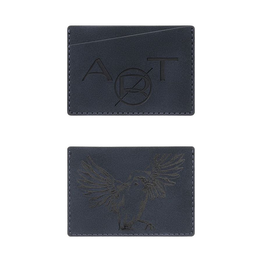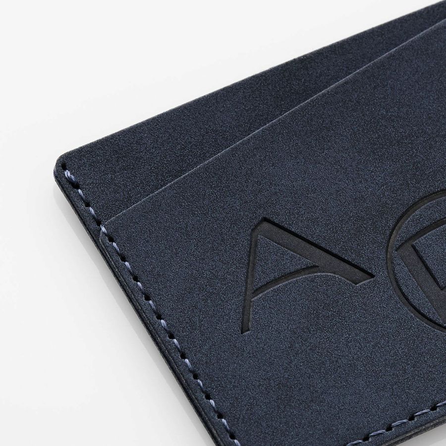 Кардхолдер выполнен из сшивки двух материалов синего цвета.