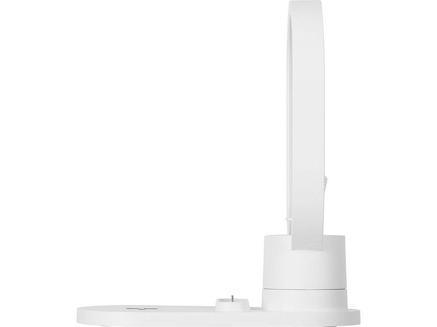 Настольная зарядная станция с лампой для трёх устройств - смартфона с поддержкой беспроводной зарядки, часов Apple и наушников Apple (разъем Lightning). Регулируемый уровень яркости (диммер). Лампу можно вращать вокруг своей оси. Для удобства транспортировки лампу можно отсоединить.