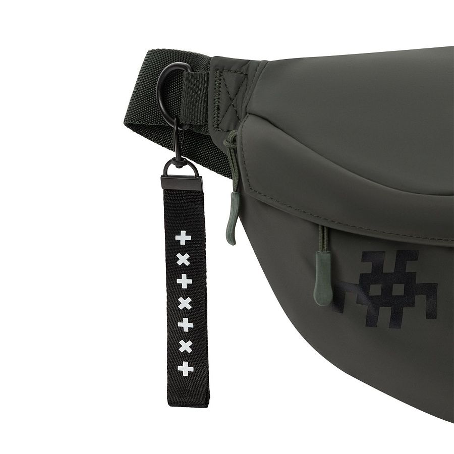 Поясная сумка изготовлена из прочного материала — полиэстер.