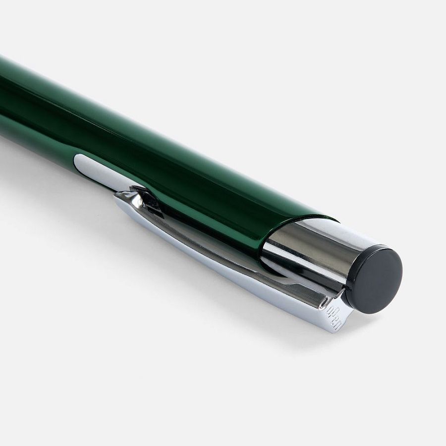 Яркая шариковая ручка с глянцевым цветным корпусом и хромированными деталями.