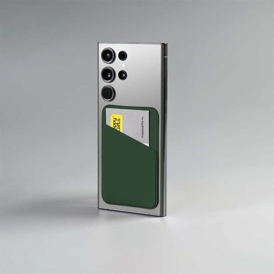 Чехол для карты Simply, самоклеящийся 65 х 97 мм, зеленый, PU, с эффектом soft touch, для карты 86 мм х 54 мм, скошенный угол. Крепится с помощью двухстороннего скотча.