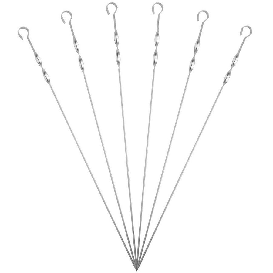 Длинные шампуры подходят для мангалов шириной до 40 см. Спираль у рукоятки позволяет фиксировать шампур при переворачивании шашлыка во время приготовления.