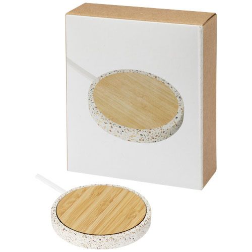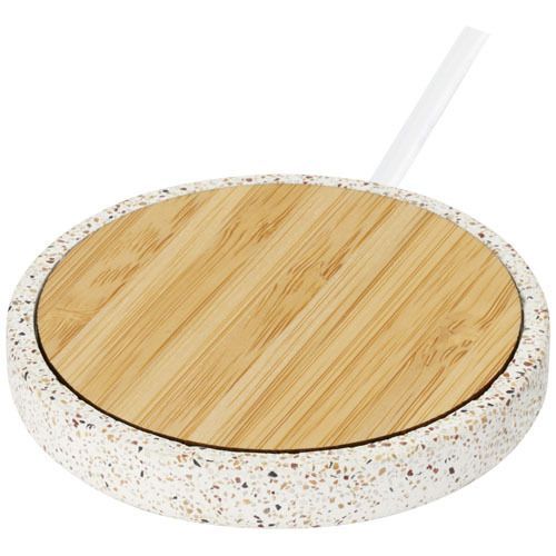 Беспроводное зарядное устройство мощностью 10 Вт, изготовленное из сочетания натурального терраццо и бамбука. Встроенная функция проверки на наличие посторонних предметов для избегания риска возгорания. Совместимо со всеми устройствами Qi (iPhone 8 и выше и устройствами Android, поддерживающими беспроводную зарядку). Поставляется в подарочной коробке и с инструкцией по эксплуатации (изготовленных из экологичных материалов).