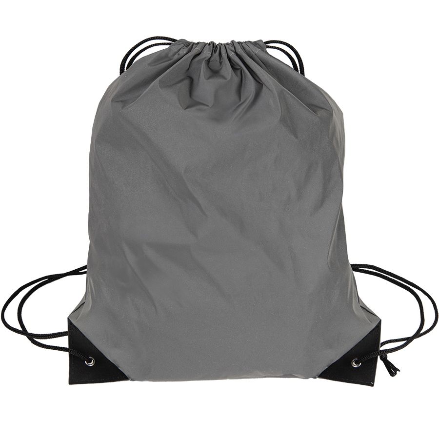 Рюкзак-мешок «Reflective» из полиэстера 240 гр м2. C чёрными уголками и шнурами. Легко и просто затягивается по верхней части чёрными шнурами. Рюкзак-мешок из светоотражающей ткани обеспечивает дополнительную защиту в темное время суток