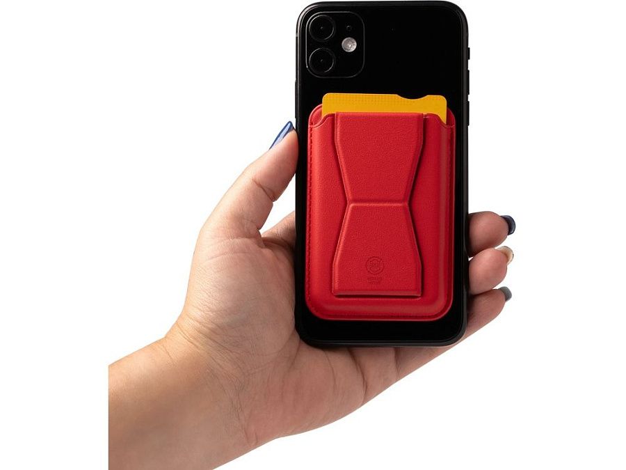 Картхолдер имеет минималистичный и современный внешний вид, который идеально дополнит любой смартфон. Складная подставка обеспечит вам удобство при просмотре видео, видео-звонках или чтении.