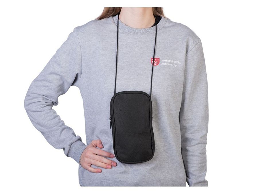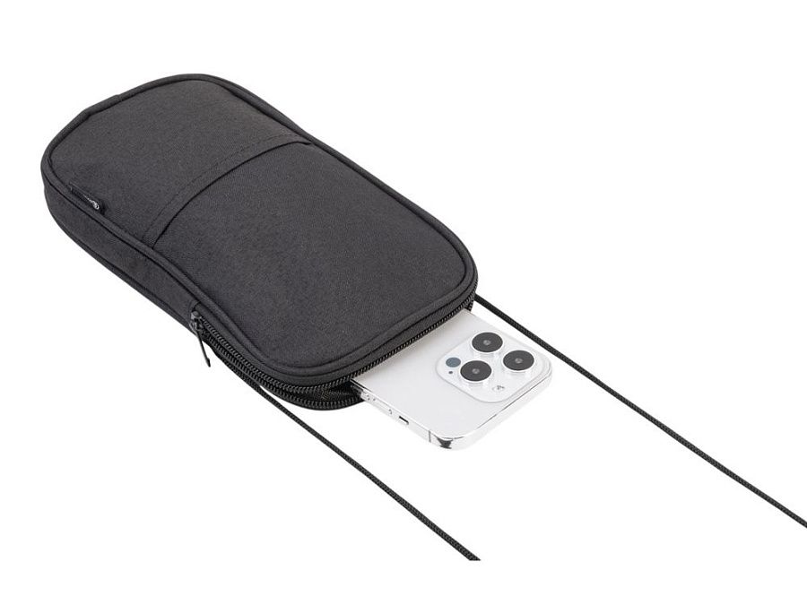 Мобильный чехол из полиэстера RPET. Основное отделение с застежкой-молнией. Внешний карман. В комплект входит шнурок для переноски. Длина шнурка 122 см.
