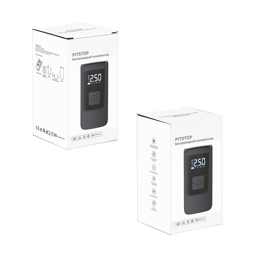 Беспроводной компрессор "Pitstop" - надежный помощник для контроля и поддержания давления в шинах. Он обладает быстрым стартом, так как не требует подключения проводов, и оснащен большим дисплеем для отображения основных параметров. Простое и удобное управление делает работу с компрессором максимально комфортной.