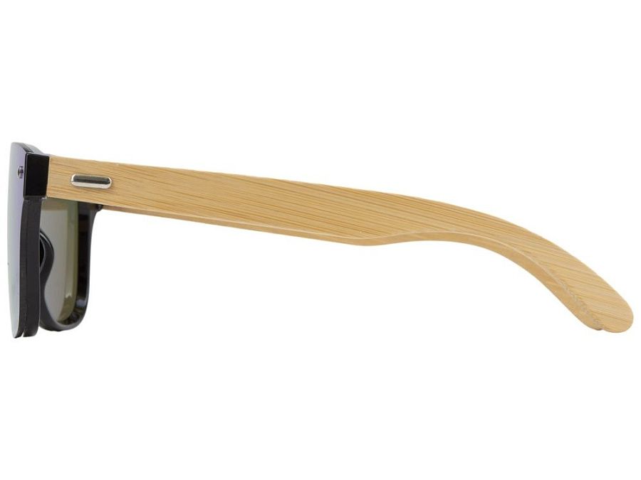 Стильные солнцезащитные очки изготовлены с применением экологически чистого материала - бамбука. Дужки из 100% натурального бамбука не имеют лишних деталей и приятны на ощупь. Прочная конструкция креплений. 100% защита от вредного УФ-излучения (UV 400). Сплошная зеркальная линза делает их стильным аксессуаром. Поставляются в качественном футляре из неопрена.