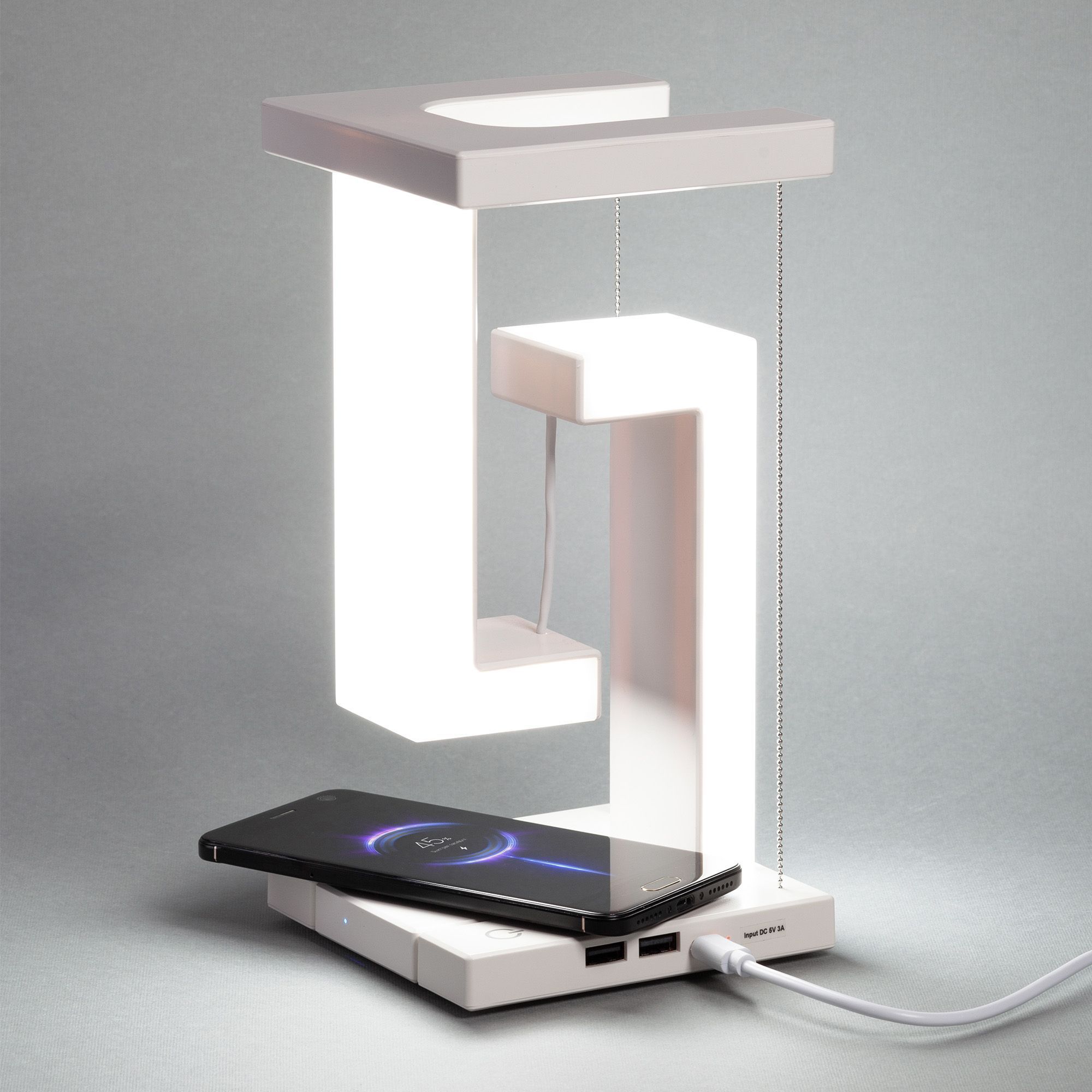 Особенностью этой лампы является встроенный съемный модуль для быстрой беспроводной зарядки мощностью 15W, который можно использовать отдельно. Также в наличии 2 USB-разъема для проводной зарядки.