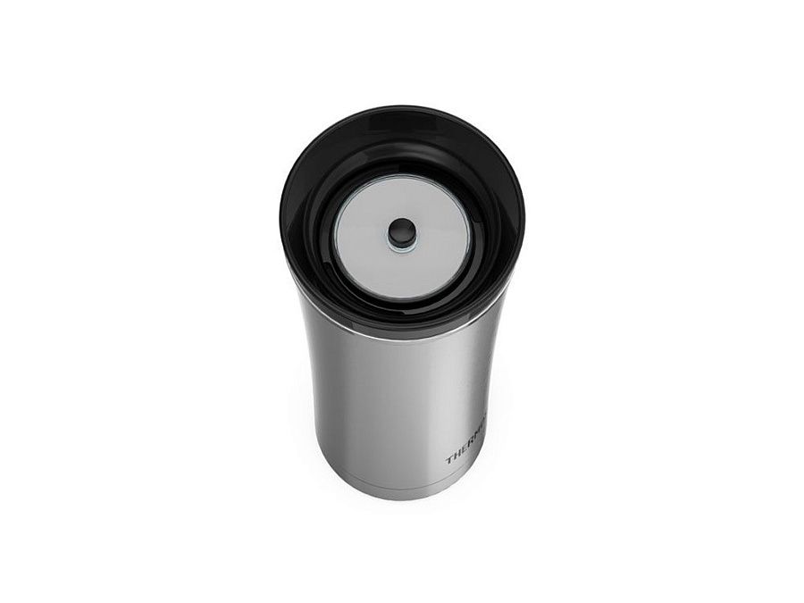 Комфортное использование обеспечивается особенностями конструкции термокружки. Из неё можно пить, не снимая крышки – достаточно нажать на кнопку, расположенную в центре верхней части крышки-пробки. Термокружку легко открывать и закрывать в одно касание.