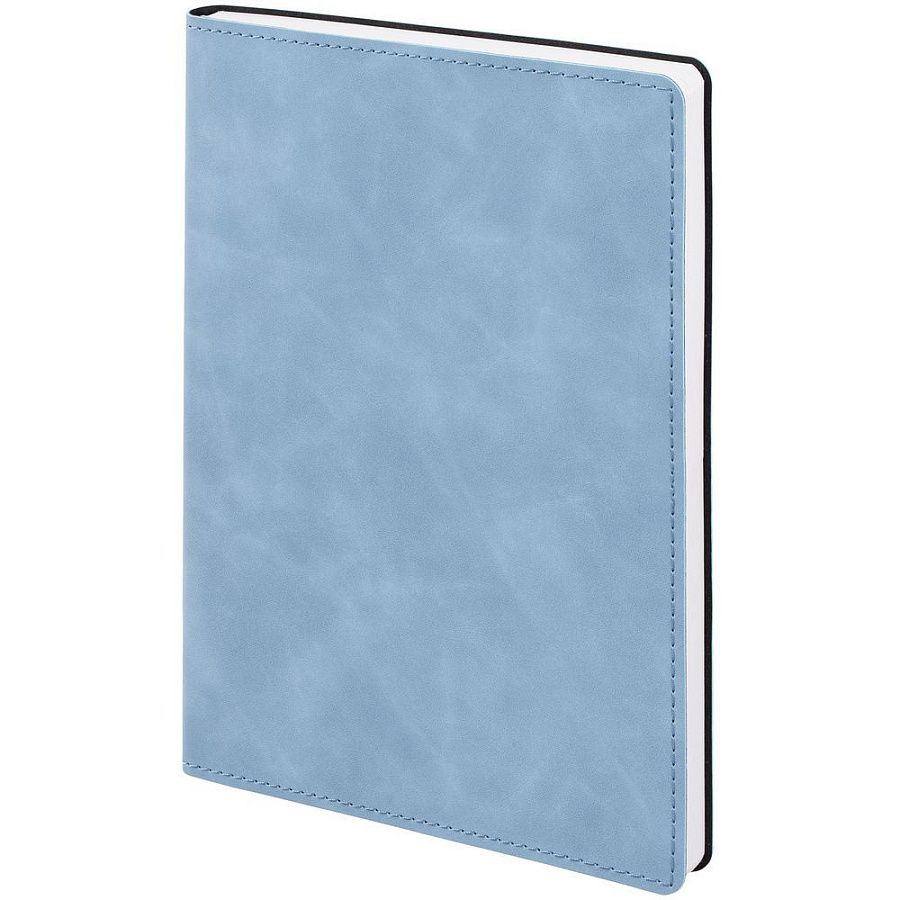 Ежедневник в клетку, с гибкой обложкой, выполнен из материала Nubuck Touch, голубой JJ, дополнен ляссе светло-голубого цвета.