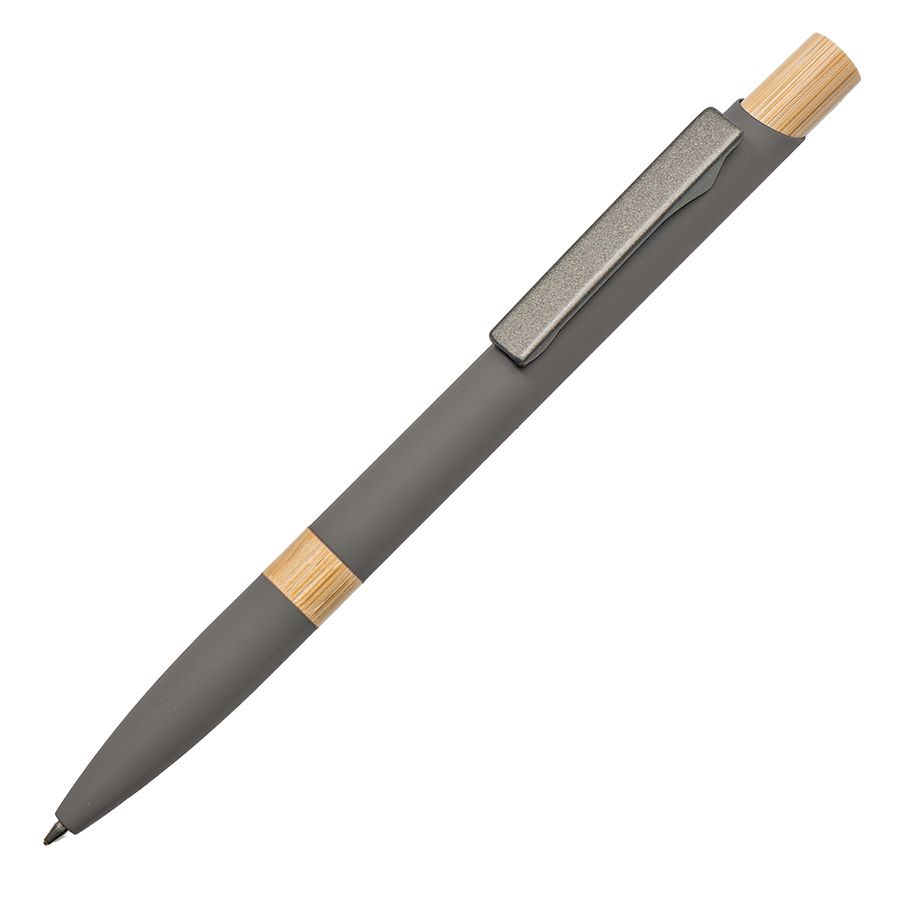 Экстравагантная модель ручки FRESCO. Корпус алюминиевый с матовым покрытием soft touch - ручку приятно держать в руке. Металлический клип-прищепка является эксклюзивом бренда В1. Отделка из натурального бамбука добавляет модели оригинальность. Кнопка нажимного механизма оптимального диаметра удобна для подушечки пальца. Визуально ручка выглядит очень благородно. В использовании гарантированно комфортна. • Цвет, близкий к Pantone Cool Gray 8C• Размер φ 10 x 140 мм• Корпус из алюминия с покрытием soft touch• Металлический клип-прищепка• Отделка - бамбук• Нажимной механизм подачи стержня• Пулевидный пишущий узел 1.0 мм• Длина линии письма 800-1000 м• Чернила Dokumental, цвет чернил синий• Сменный стержень Parker type• Виды нанесения: гравировка