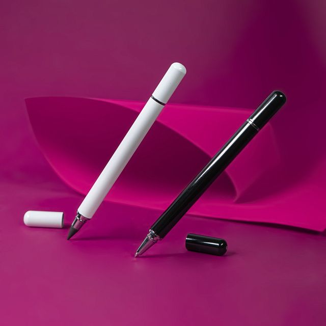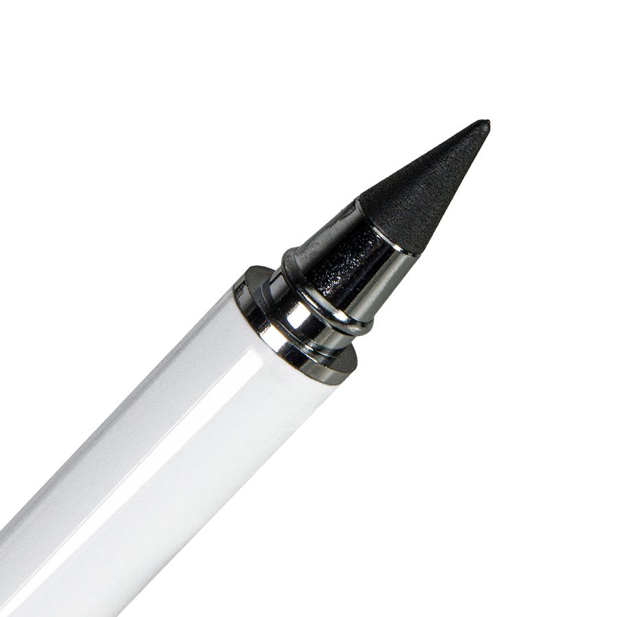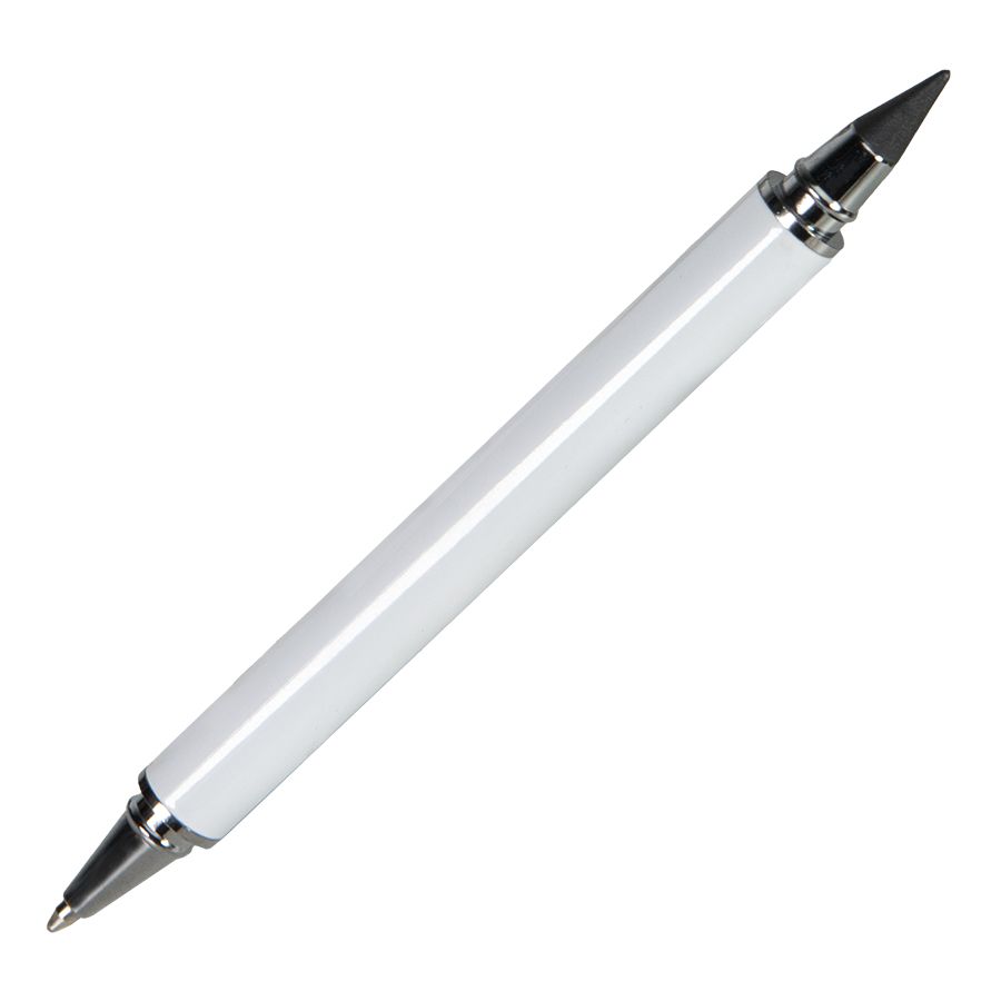 Функциональная модель 2 в 1. С одной стороны - это ручка, а с другой - вечный карандаш. Идеальный выбор рациональных людейкак для промо мероприятия, так и в качестве бизнес подарка. Так как гораздо выгоднее приобрести один пишущий инструмент, в котором будет и ручка, и вечный карандаш, нежели покупать их по отдельности.• Цвет, близкий к Pantone White• Размер φ 10 x 136 мм• Корпус и колпачки из алюминия• С одной стороны ручка, с другой - вечный карандаш• Длина линии письма ручки 800-1000 м• Пулевидный пишущий узел 1.0 мм• Цвет чернил синий• Сменный стержень Parker type• Упаковка: транспортный картонный футляр, претензии по качеству транспортировочной упаковки не принимаются• Виды нанесения: гравировка