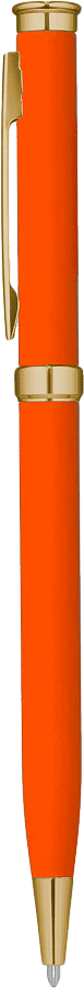 Корпус с софт-тач покрытием. Наконечник, кольцо и верхняя часть пластиковые, золотистые.
