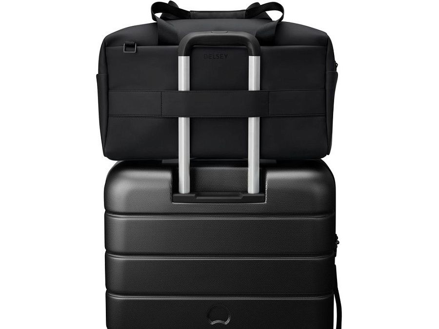 - Рукав, расположенный на задней стороне сумки, позволяет разместить ее на для чемодане без риска, что она упадет.