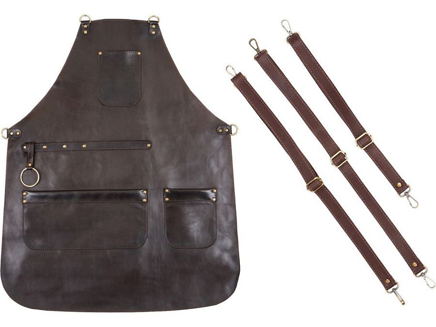 - Долговечная фурнитура: Металлическая фурнитура из сплава ЦАМ с антикованным покрытием не только делает фартук более прочным, но и добавляет ему строгий и классический вид.