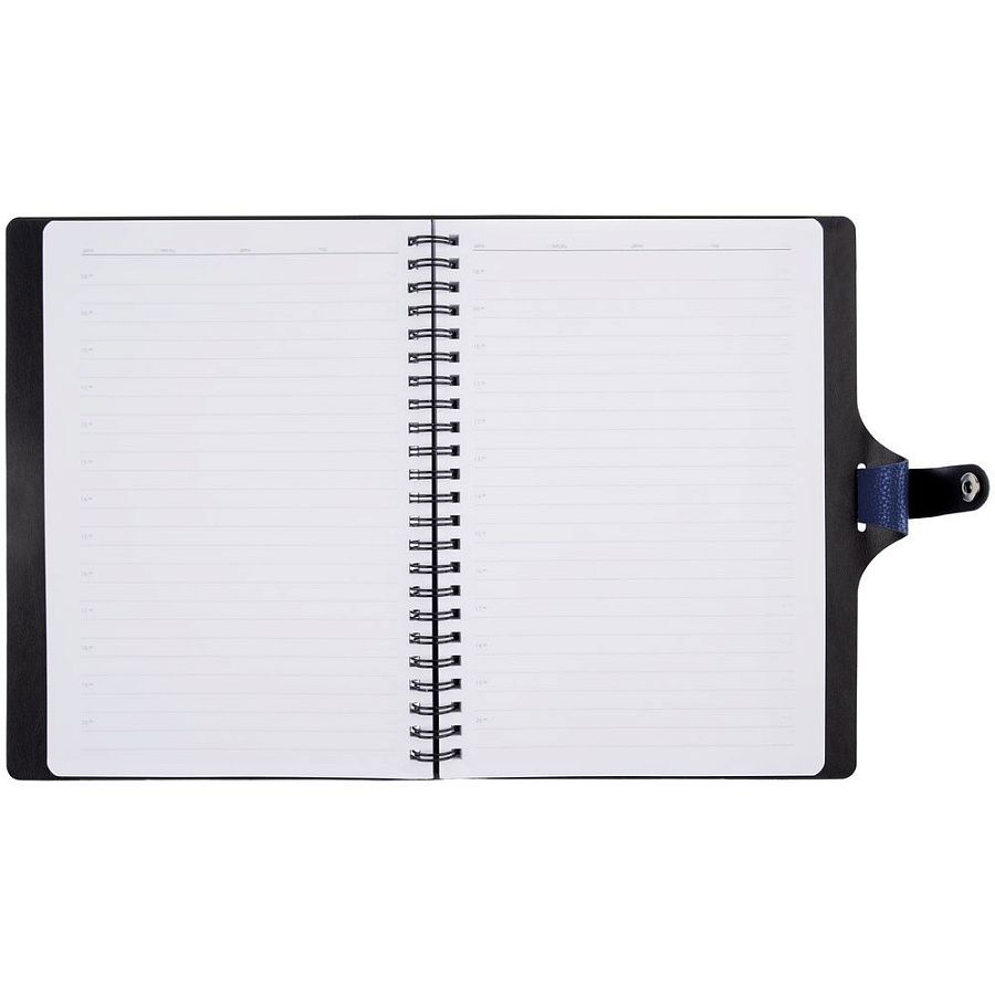 Ежедневник с гибкой обложкой, выполнен из материалов La Fite, синий НН и Waltz черный АА.