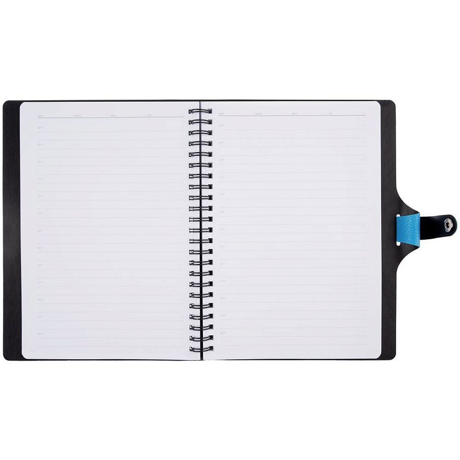 Ежедневник с гибкой обложкой, выполнен из материалов La Fite, голубой JJ и Waltz черный АА.