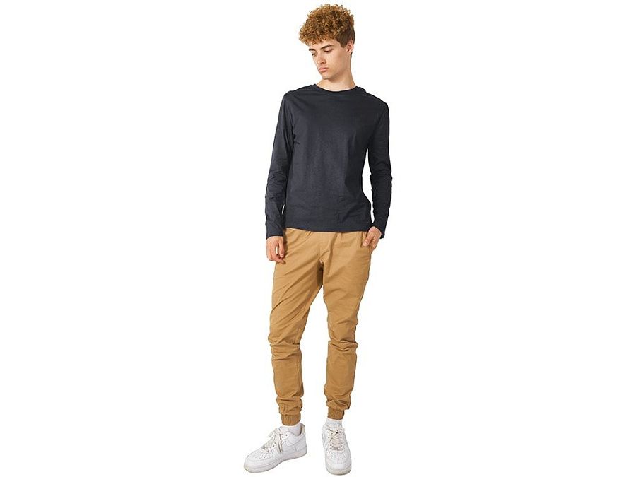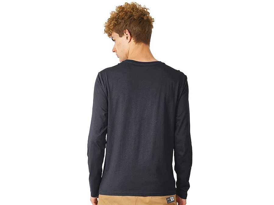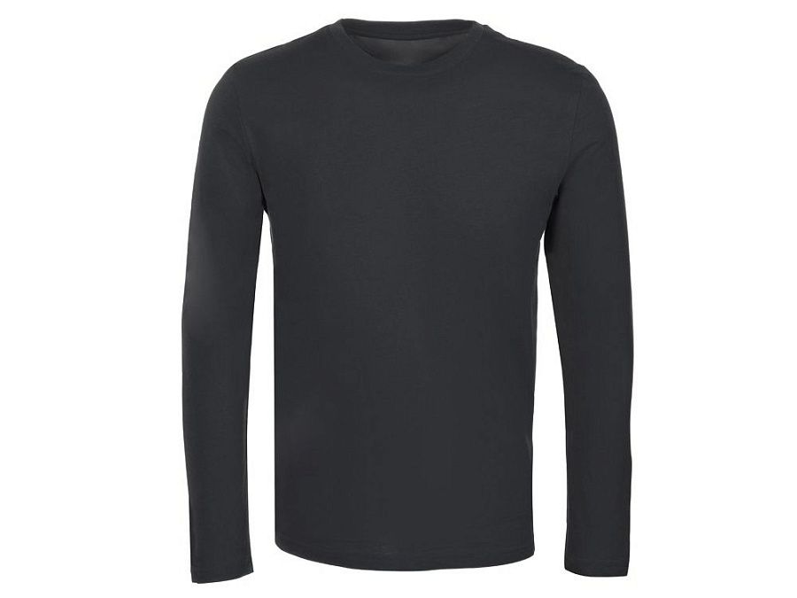 Футболка с длинным рукавом комфортной посадки с боковыми швами. Горловина обработана рибом 1х1 и тесьмой по спинке. Футболка выполнена из хлопкового джерси.