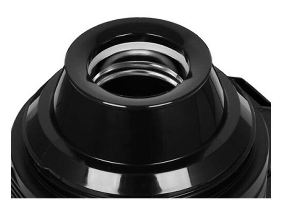 Удобству в транспортировке и эксплуатации способствуют складная ручка, съёмный плечевой ремень и специальные стопперы на корпусе для устойчивости термоса в горизонтальном положении. Термос укомплектован крышкой-чашкой.