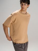 Футболка унисекс свободной посадки Vozduh создана для тех, кто следит за трендами и ценит комфорт. Необработанные края рукавов и низа изделия добавляют ему оригинальности и легкой небрежности, а боковые вставки создают притягательный летящий силуэт.