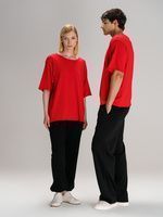Футболка унисекс свободной посадки Vozduh создана для тех, кто следит за трендами и ценит комфорт. Необработанные края рукавов и низа изделия добавляют ему оригинальности и легкой небрежности, а боковые вставки создают притягательный летящий силуэт.