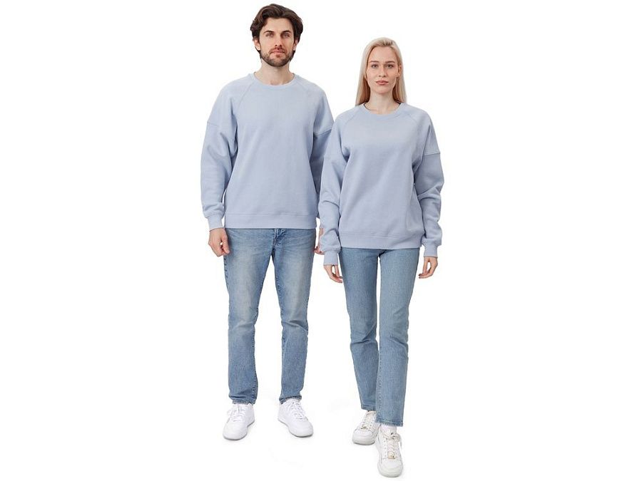 Главная особенность этого свитшота оверсайз — необычный рукав из двух частей: верхней — реглан до середины предплечья — и нижней, которая заканчивается резинкой. Благодаря такому необычному крою свитшот сидит комфортно по фигуре.