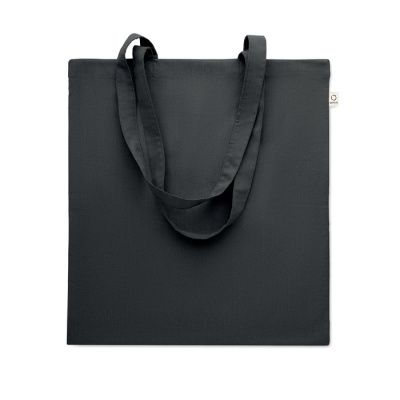 Сумка для покупок из переработанного хлопка (70%) и RPET(30%) с длинными ручками. 140 гр/м². Этот пункт может уменьшиться после впечатывания.