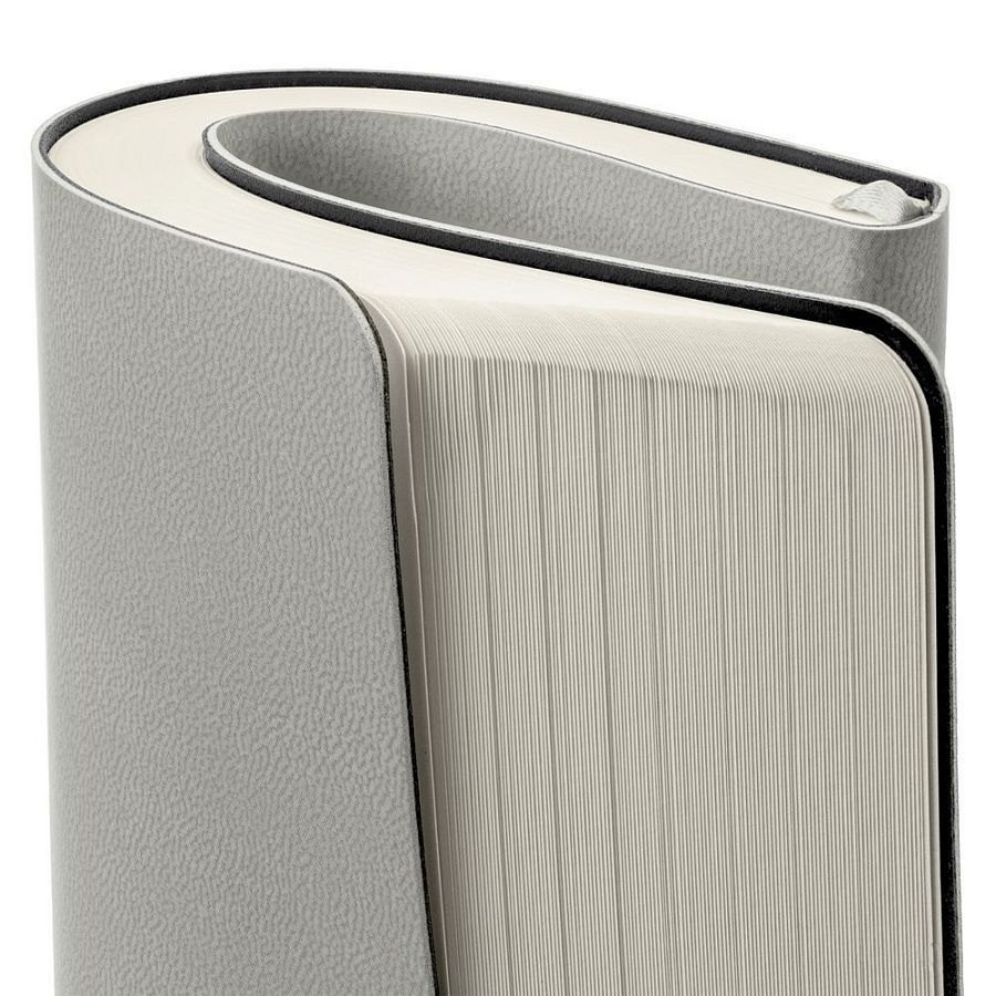 Ежедневник с гибкой обложкой, выполнен из материала Latte, серый, дополнен ляссе в цвет обложки.