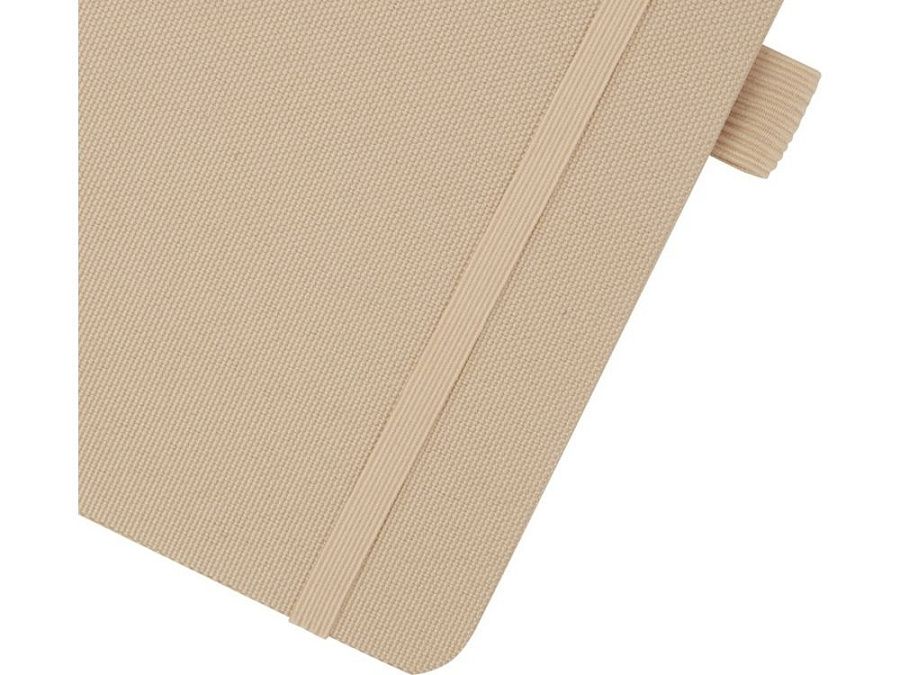Блокнот формата А5 с обложкой из переработанного ПЭТ. Содержит 80 листов в линию плотностью 70 г/м², изготовленных из переработанной бумаги, с петлей для ручки и лентой-закладкой. Может быть дополнен шариковой ручкой Honua 107757 из переработанного ПЭТ. Переработанный PET пластик.