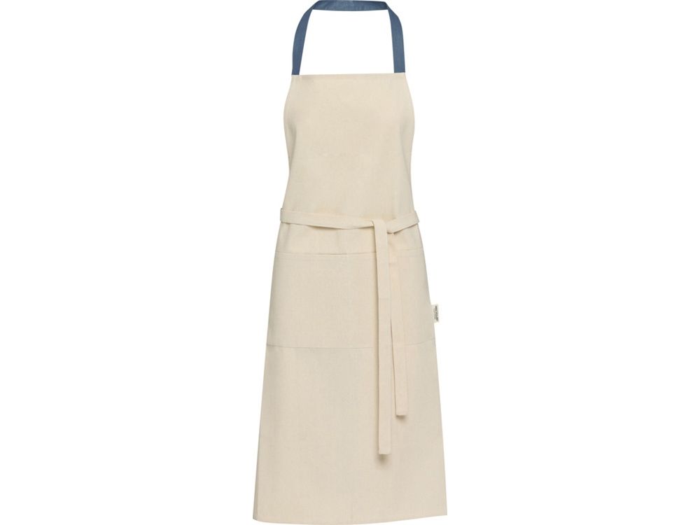 Фартук Nia изготовлен из 100% сертифицированного GRS переработанного хлопка плотностью 200 г/м². Этот фартук из натурального хлопка с контрастной петлей на шее защитит вашу одежду во время приготовления пищи. Фартук Nia с двумя соседними карманами общим размером 45 x 20 см и завязками длиной 1 метр обеспечивает обеспечивает практичность и стиль на вашей кухни. GRS certified recycled cotton, 210 g/m2.