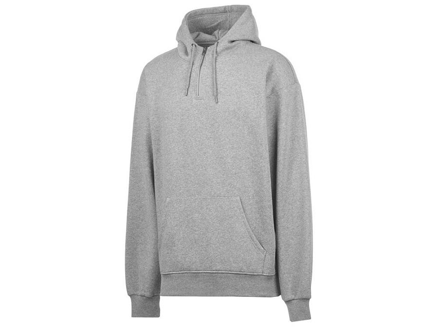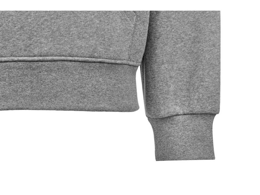 Худи с капюшоном ворот на молнии. Шнур в капюшоне с металлическими наконечниками. Отделка горловины спинки внутри тесьмой, Риб 2х2 по низу изделия и манжетам. Удобный карман кенгуру.