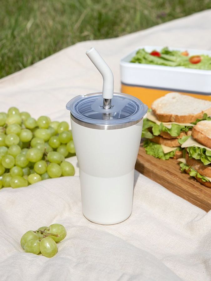 корпус - нержавеющая сталь, 18/8; крышка - пластик; трубочка - нержавеющая сталь, пищевой силикон