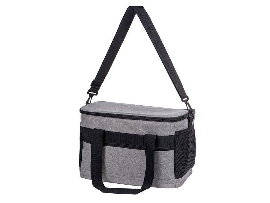Вместительная сумка-холодильник со специальной конструкцией дна, предотвращающей протекание наружу жидкости от размораживания. Поверхность сумки всегда остается сухой. Основное отделение и карман спереди на молнии. Сбоку 2 сетчатых кармана. Съемный плечевой ремень регулируется по длине. Короткие ручки фиксируются вместе застежкой-липучкой. В комплекте открывалка для бутылок.